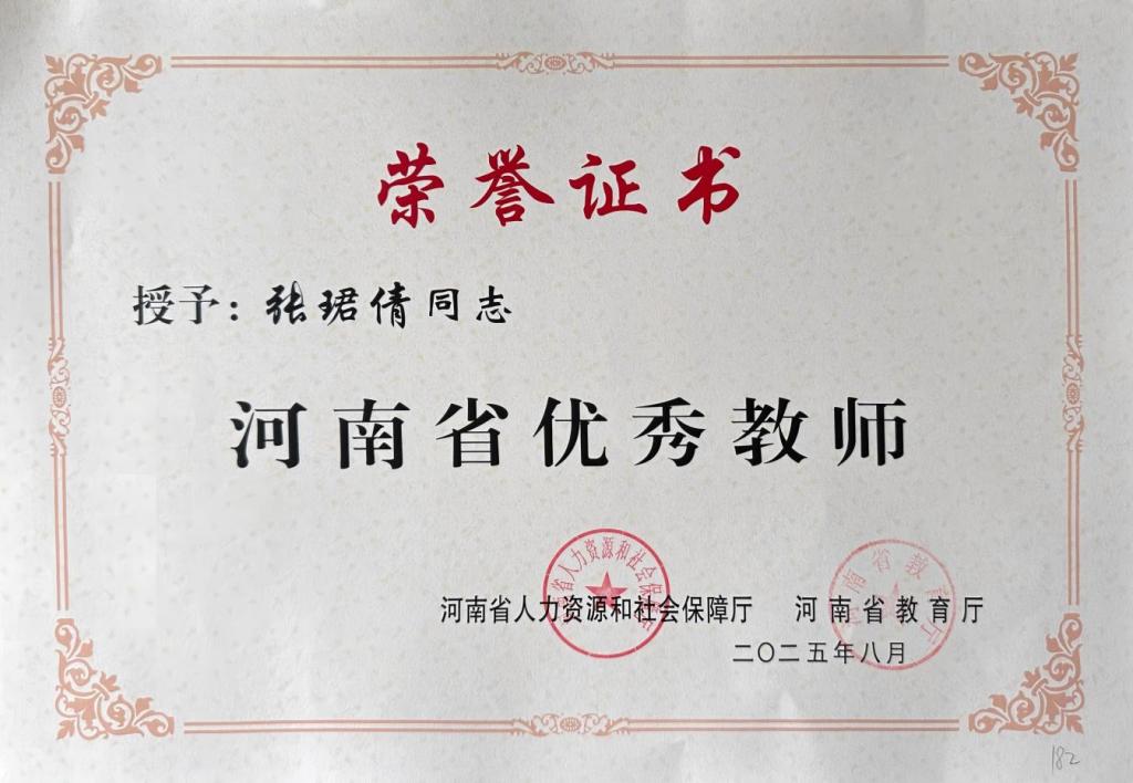近日,河南省人力资源和社会保障厅、河南省教育厅联合下发《关于表彰河南省教育系统先进集体和先进个人的决定》(豫人社发〔2025〕17号),对一批以教育家精神为指引,牢记为党育人、为国育才的初心使命,专心致志投身教书育人工作的先进集体和先进个人予以表彰。我院张珺倩老师获“河南省优秀教师”荣誉称号。